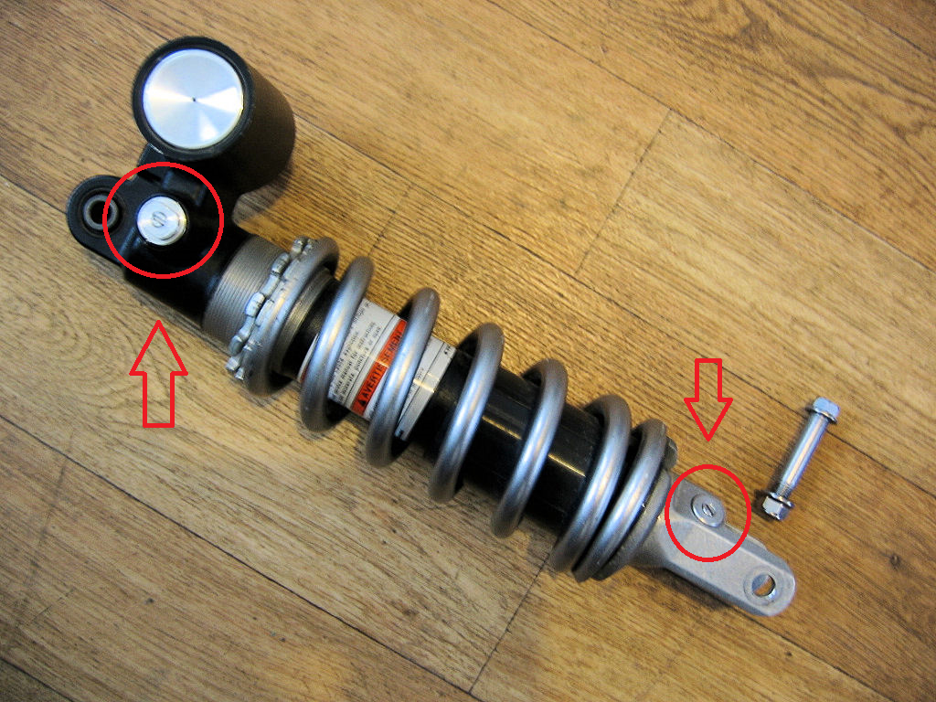 Jsou totiž „bolt in“, neboli padnou bez nějakých velkých úprav. Ano, je u nich malá úprava, ale to jen taková, že se musí koupit spodní šroub+matka od tlumiče. Co mi sdělil jirinsv, tak sedí šroub a matka tlumiče z GSX-R. Je prý dostatečně pevný a má potřebnou délku.