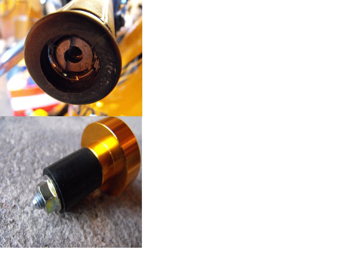 No dle rad pána co se toho chtěl zbavit by to mělo být tak, že buď zatlačim vnitřní závaží do rukojeti a našroubuju gumu, nebo ho uplně vytáhnu. Tu druhou variantu jsem rovnou vyloučil, protože předpokládám, že to tam má nějakej smysl. Nerad bych měl pěknej doplněk v barvě motorky a potom super klepajícíse rukojeti. Každopádně nejreálnějc vypadá ta varianta, ubrousit to a nasadit bez gumy. Ještě budu muset teda odříznout kus toho šroubu, protože je moc dlouhej.......Do garáže se dostanu až příští tejden, tak to pak zkusim.....když jsem to kupoval myslel jsem, že jen vyndam a zandam, a né že za ten randál to budu ještě ručně soustružit :- ).