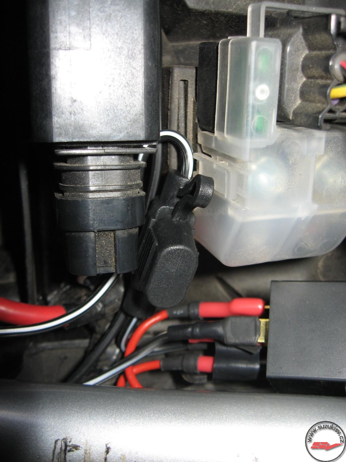 Ideální je je zapojit přes spínací relé a v okruhu nechat pojistku, stejně tak třeba jako u autozdířky – http://suzukisv.cz/index.php/tuning/73-din-zasuvka-na-sv