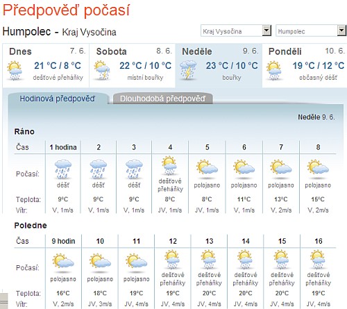 Tak se nám ta předpověď na neděli zase pěkně kazí...teď tam svítěj dokonce tři kapičky  Nejlíp bude asi v pátek, ale to je nám jaksi prd platné...