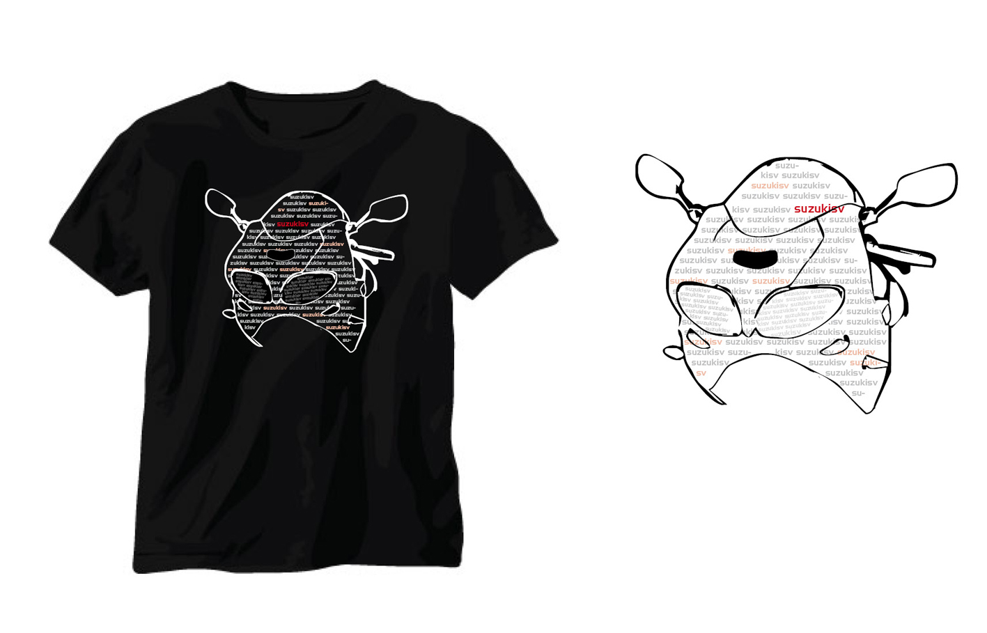 Canichon píše: Kawa píše: dobrý....jen pokud by to zůstalo takto, bude to jako 1 velká nažehlovačka..... Oba obrázky tam zůstat nemusí, může zůstat jen jeden, pak to bude velikostně odpovídat i prapůvodnímu motoru, který nažehlovačka není. Nejde ani tak o velikost loga - ta je limitovaná velikostí síta - obrázky se dají zmenšit, dle tohoto rozměru.... motory tam klidně můžou zůstat oba.... ale: na černé variantě: to, co je černé - nebude se tisknout, nahradí to barva podkladového textilu.... šedá - tam, kde je plocha, tak to bude jako nažehlovačka.... bílá - to už je OK, toho není tolik.... na bílé variantě: to, co je černé se bude muset natisknout šedá - to samo, jako u černé bílá - byl by použit podklad textilu...... Když jsem dělal 1. motor..... takto vypadala 1. nažehlovačka: http://www.suzukisv.cz/sv-gallery/?g2_itemId=49973ze které jsem okamžitě upustil.....to je celá plocha "barvy" nanesená na textilu.....humus, obzvláště při zapocení se.....