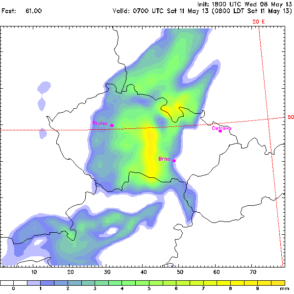 misekd píše: Netypnu zdroj - ale odhadnu směr na východ a že model je počítán pro 0700 utc ráno .) By nemuselo být tak zlé... Je to z jihozápadu na severovýchod a ta spodní oblačnost z Rakous dorazí cca ve 13 hod a množství srážek jde až do oranžova.A je to obrázek pro 13 hod.